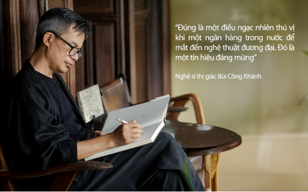 “Đúng là một điều ngạc nhiên thú vị khi một ngân hàng trong nước để mắt đến nghệ thuật đương đại. Đó là một tín hiệu đáng mừng”, nghệ sĩ Bùi Công Khánh.