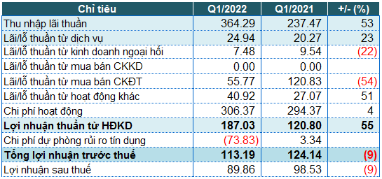 Kết quả kinh doanh quý 1/2022 của VBB. Đvt: Tỷ đồng Nguồn: VietstockFinance |