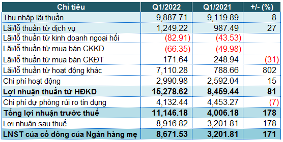 Kết quả kinh doanh quý 1/2022 của VPB. Đvt: Tỷ đồng Nguồn: VietstockFinance |