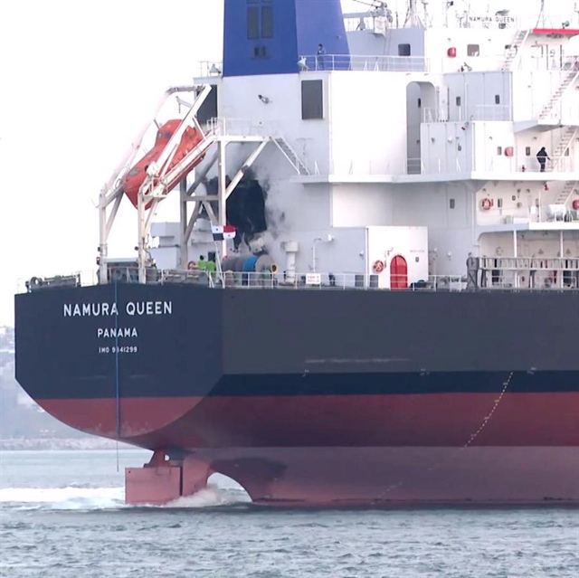 Tàu chở ngũ cốc của hãng Namura Queen, Panama bị trúng tên lửa vào tuần trước tại vùng biển của Ukraine - Ảnh: Getty Images |