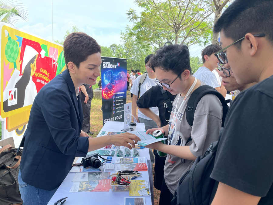 | Học sinh, sinh viên tìm hiểu cơ hội du học Đức tại một sự kiện do Trường Đại học Việt Đức tổ chức. Ảnh: Hà An |