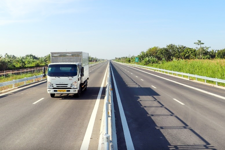 | Tuyến chính dự án thành phần cao tốc Hậu Giang - Cà Mau được thông xe từ ngày 19/1 vừa qua. Ảnh: Lê An |