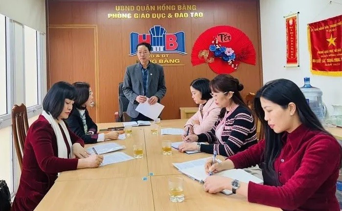 Sở GD&ĐT Hải Phòng kiểm tra tại Phòng GD&ĐT quận Hồng Bàng (Hải Phòng). Ảnh: Nguyễn Dịu.