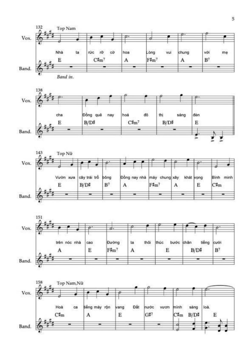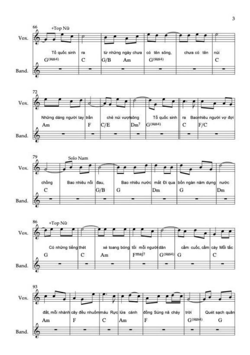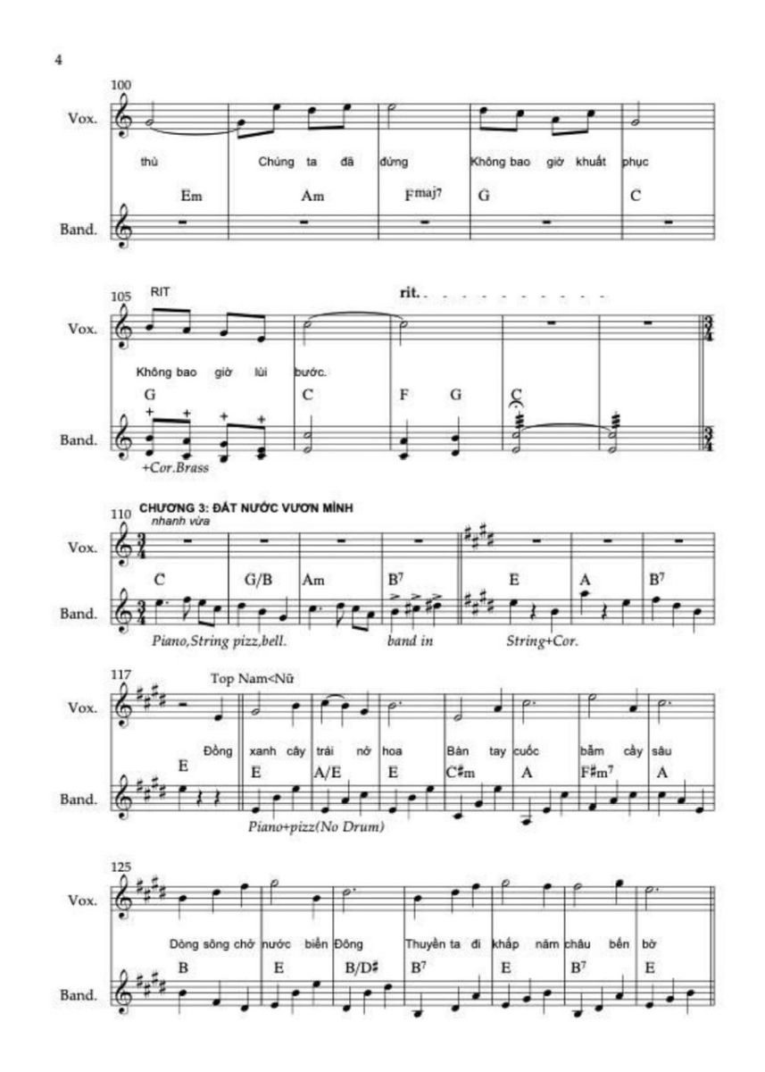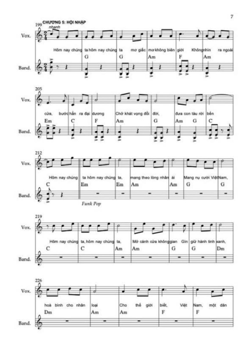 Chương này sử dụng hợp âm chủ đạo C, C6, F/C, G/C. Sử dụng thêm maj6 vì nó không căng như maj7, không mơ hồ như add9, rất phù hợp với “ước mơ được sống”.  Điều cực kỳ quan trọng là ở “Việt Nam muôn năm” không add9, không sus, không màu treo mà chỉ còn hợp âm đầy, trường độ dài, tất cả các nốt trong cùng hợp âm rộng vang lên. Lời thề không được có dấu hỏi hòa âm.