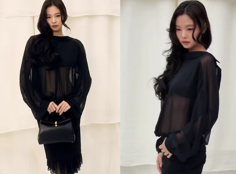 Jennie xuất hiện đầy ấn tượng khi diện chiếc váy màu đen với phần thân áo xuyên thấu cùng đường cắt táo bạo vô cùng gợi cảm. Bộ trang phục tôn lên vóc dáng thon thả, tự nhiên của nữ ca sĩ, đồng thời vẫn giữ được vẻ thanh lịch và quyến rũ.