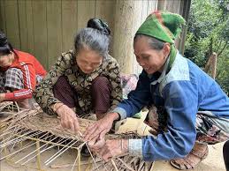 Mỗi sáng sớm, các cụ ông, cụ bà lại có mặt tại nhà một người dân ở trung tâm bản Văng Cuộm (xã Yên Na, tỉnh Nghệ An) để học đan bèo. Không khí học nghề trở nên rộn ràng.