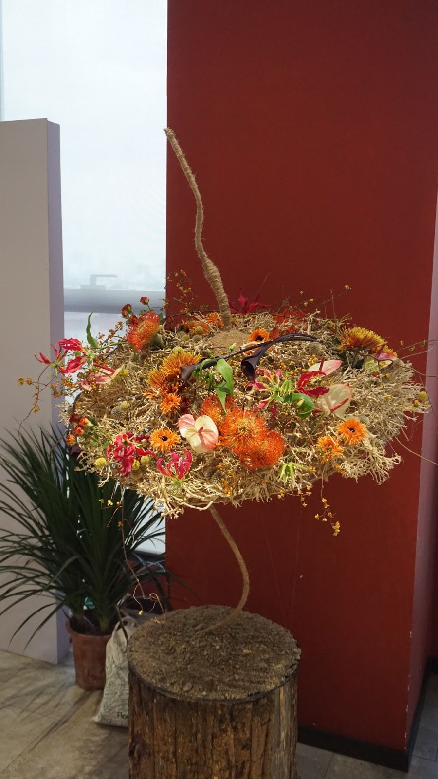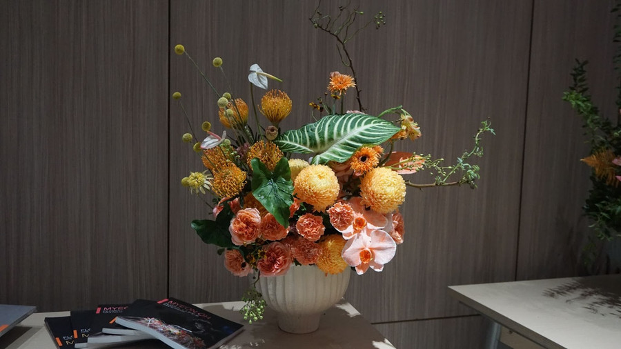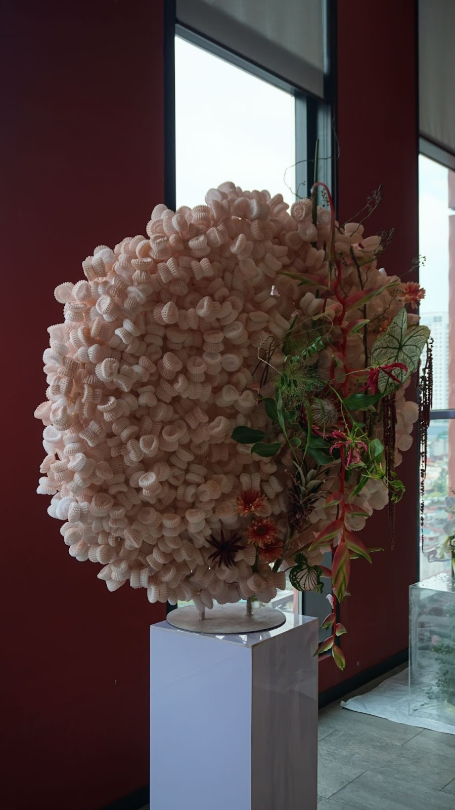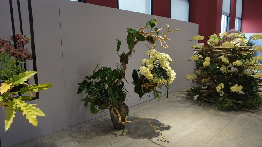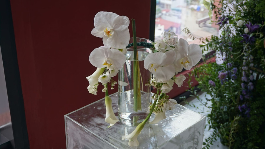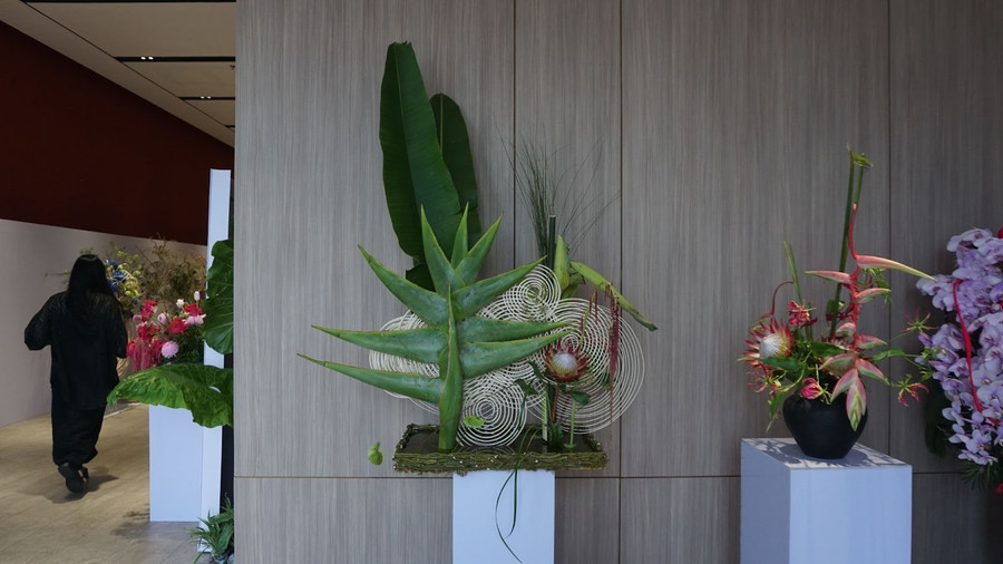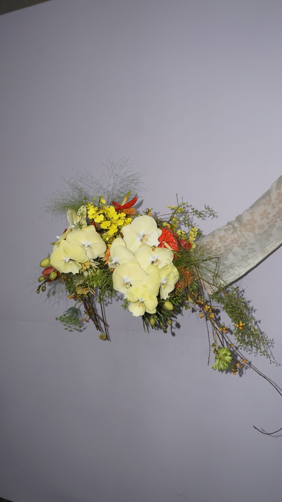 Các tác phẩm hoa tươi do các giáo viên tại FLONA Academy thực hiện được trưng bày trang trọng tại buổi triển lãm.