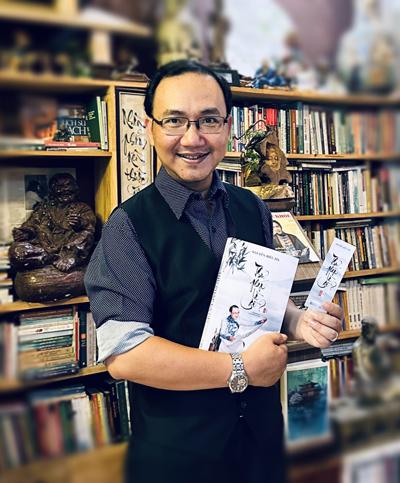 Nguyễn Hiếu Tín và tập sách “Thư pháp là gì?” vừa xuất bản. (Ảnh do nhân vật cung cấp)